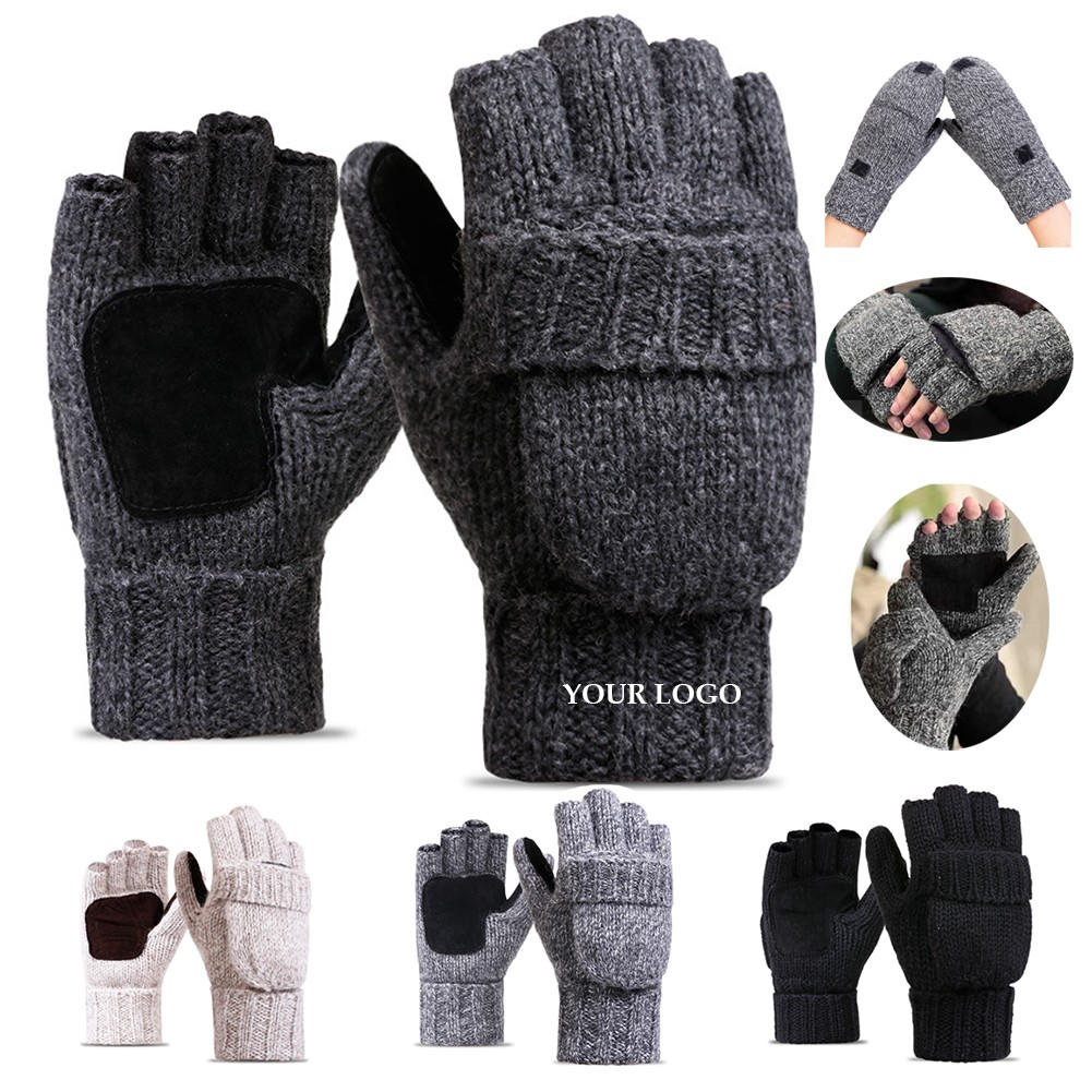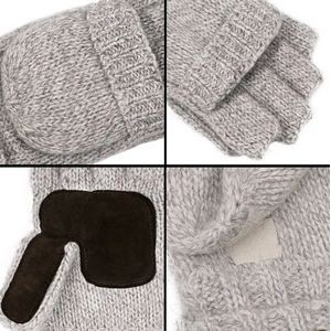 Convertible mitten gloves are mede of 50% Wool & 50% Acrylic outer shell, fleece interior, 100% thermal insulation, leather palm. The convertible fingerless glove is very convenient to get your fingers free to do something or put flap cover over to keep warm with a piece of velcro on the back. There is a piece of wearable hogskin on the palm and thumb, it is nonslip when you hold your pen, phone, bottle or other things.
