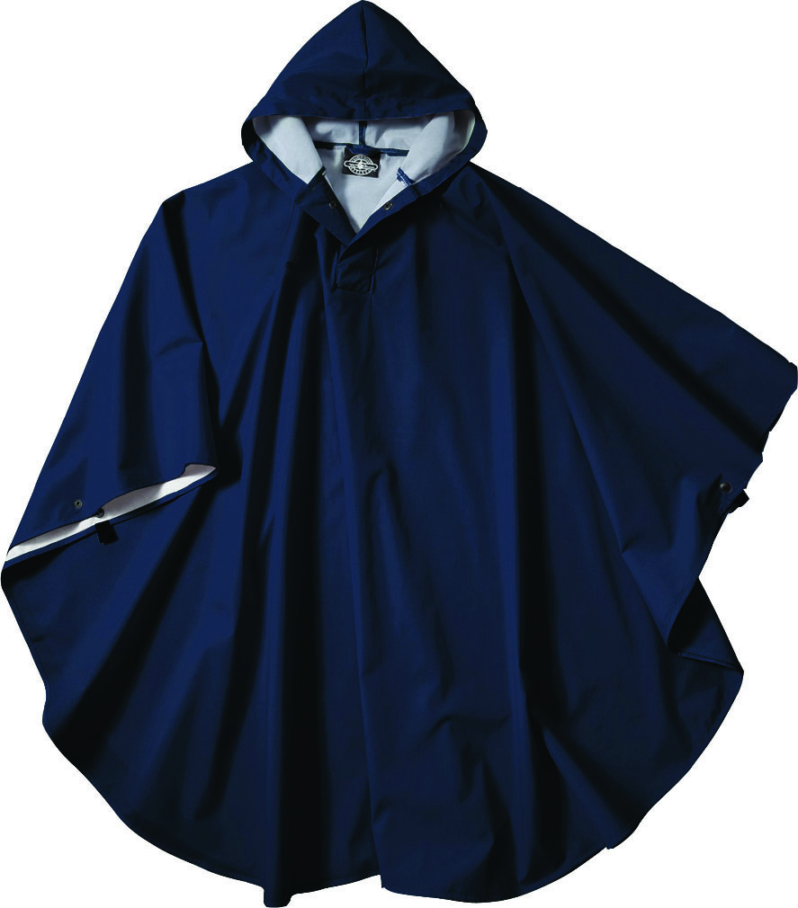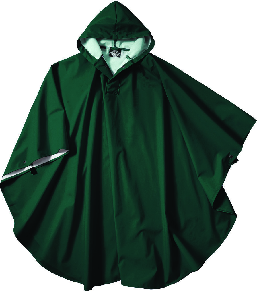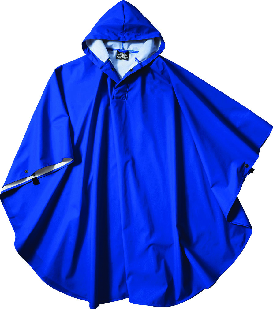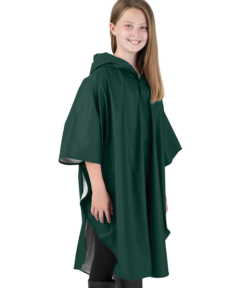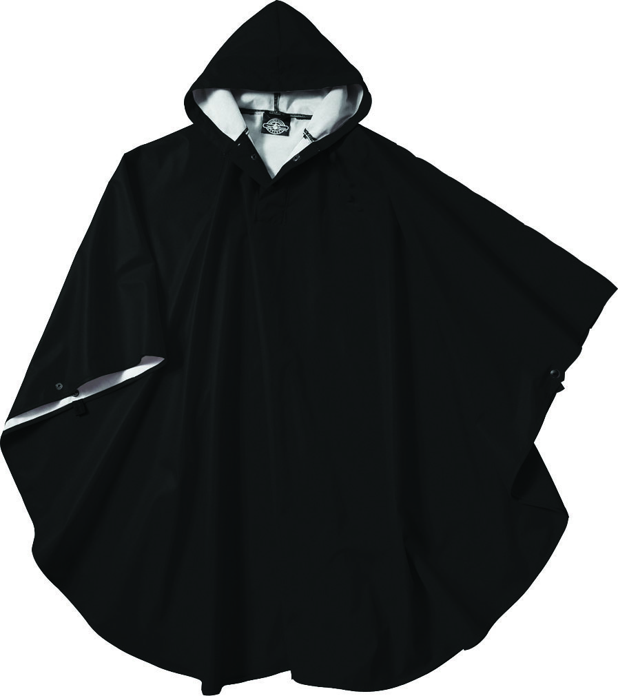 The Youth Pacific Poncho is crafted from high-quality, waterproof New Englander® Polyurethane bonded to a knit backing to provide additional fabric strength. It features heat-sealed seams and hood with drawstrings. Snap placket at neck and side snap closure under arms provide added wind/rain protection. Comes with matching bag.